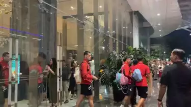 Rombongan skuad Garuda itu diawali oleh Marselino Ferdinan yang lebih dulu memasukkan bus. Kemudian disusul oleh Ernando Ari, Marc Klok dan para pemain Timnas Indonesia lainnya.