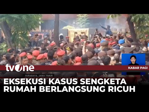 Surabaya, tvOnenews.com - Aksi tolak eksekusi rumah di Surabaya berlangsung ricuh.