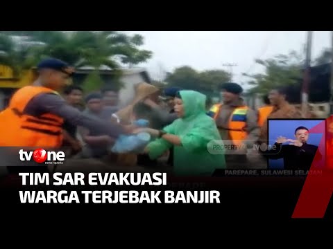 Parepare, Sulawesi Selatan - Ratusan rumah warga di Kota Parepare, Sulawesi Selatan terendam Banjir. Sejumlah video memperlihatkan Tim SAR mengevakuasi warga yang terjebak banjir.