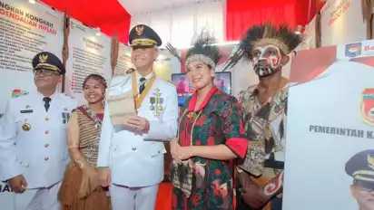 Mappi, tvOnenews.com - Penjabat Bupati Mappi, Michael R. Gomar menghadiri upacara peringatan Hari Otonomi Daerah XXVII Tahun 2023 yang berlangsung di Anjungan Pantai Losari Makassar, Sabtu (29/4/2023).