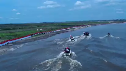 Mappi, tvOnenews.com - Bertepatan dengan peringatan Hari Ulang Tahun ke-78 Kemerdekaan Republik Indonesia, Kabupaten Mappi Provinsi Papua Selatan berhasil mencatatkan rekor pembentangan Bendera Merah Putih sepanjang 5.000 meter atau 5 kilometer di atas rawa.