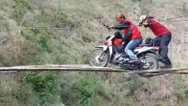 Pinrang, tvOnenews.com - Sebuah jembatan gantung di Kabupaten Pinrang, Sulawesi Selatan nyaris putus dan ambruk .Warga yang melintas harus bertaruh nyawa saat menyeberangi jembatan yang merupakan penghubung kabupaten Pinrang dan kabupaten Tana Toraja.