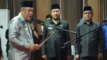 Konawe Utara, tvOnenews.com - Bupati Konawe Utara, Ruksamin melantik dan mengambil sumpah/janji Jabatan Pimpinan Tinggi Pratama dan Jabatan Administrator di Lingkungan Pemerintah Kabupaten Konawe Utara.