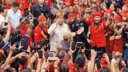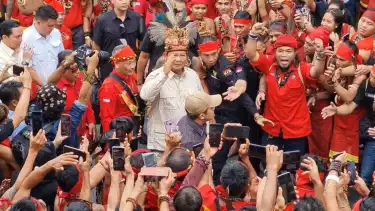 "Saya bangga sekali atas sambutan ini. Saya mau cerita bahwa saya terima kasih banyak untuk relawan Dayak yang waktu itu membantu saya di tentara," kata Prabowo.