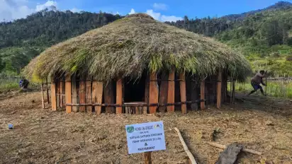 Lanny Jaya - Dalam rangka menjaga dan melestarikan rumah adat, personel Pos Malagay Satgas Yonif Mekanis 203/AK membuatkan Honai atau rumah adat asli Papua milik Bapak Tekinus Wea yang bertempat di Distrik Malagay.Â