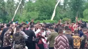 Sumbawa, tvOnenews.com - Presiden Joko Widodo, beserta Ibu Negara Iriana Jokowi dan rombongan tiba di Pasar Utan, Kecamatan Utan, Kabupaten Sumbawa, NTB bertemu dengan pedagang pasar setempat, Kamis (29/12/2022).