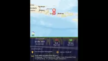 Jakarta - Gempa bermagnitudo (M) 4,8 di Kabupaten Karangasem, Bali, pada pukul 03.18 WIB yang dipicu aktivitas sesar atau patahan aktif lokal, menyebabkan sejumlah kerusakan bangunan, longsor dan runtuhan batu di sejumlah wilayah Bali.