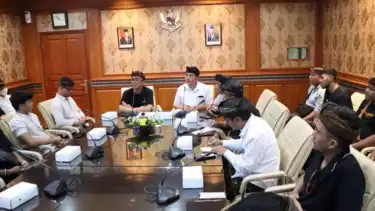 Didampingi Kadis Kebudayaan Kota Denpasar Raka Puwantara, hadir dalam rapat tersebut Ketua Pasikian Yowana Kota Denpasar AA Angga Harta Yana, Go Andik bersama Agung Suyoga dari Sing Main-Main Official, serta dewan juri I Gede Anom Ranuara dan Komang Indra Wirawan.