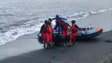 Tim SAR yang sedang melaksanakan pencarian bergerak menuju lokasi yang telah ditentukan berdasarkan informasi yang diterima. Korban dalam kondisi mengambang dan masih menggunakan pakaian wearpack (pakaian kerja).