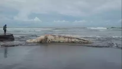 Bangkai Paus Seberat 2 Ton Terdampar di Pantai Batu Lumbang, Tabanan, Bali, Dikuburkan