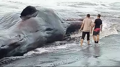 Paus Sepanjang 17 Meter Terdampar di Pantai Menang Bali, Begini Penampakannya