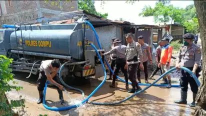 Mataram, tvOnenews.com - Polres Dompu, Nusa Tenggara Barat mengerahkan personil yang dilengkapi dengan mobil tangki air untuk membantu para korban banjir di Dompu.