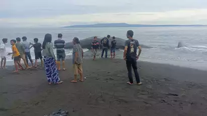 "Tadi kita bersama BPSPL sudah melakukan pengukuran paus ini panjangnya 18,2 meter dengan lebar lingkaran badan 8 meter. Diduga paus naas ini masih muda," tutup Suteja.