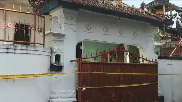 Di sekeliling rumah kini terpasang garis polisi.