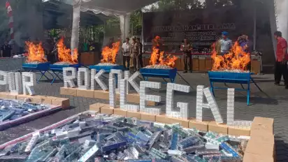 Sementara, total keseluruhan barang hasil penindakan yang dimusnahkan adalah 4.337.776 batang rokok, 522.380 mili liter minuman mengandung etil alkohol berbagai merek, pakaian, sepatu dan alat kosmetik sebanyak 114 karung atau bal, alat elektronik seperti handphone, laptop, kamera saku sebanyak 80 unit.