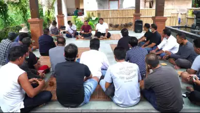 Bali - Sejumlah sekuriti Bandara I Gusti Ngurah Rai Bali, datang ke Rumah Aspirasi Nyoman Parta saat Manis Kuningan pada Minggu (21/11/2021). Mereka menyampaikan bahwa ratusan sekuriti terancam kehilangan pekerjaan karena kontraknnya tidak dilanjutkan oleh Pihak Angkasa Pura Sufort PT APS anak perusahan dari PT Angkasa Pura 1.