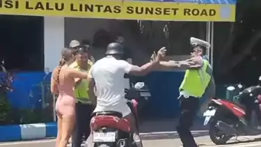 Dalam video berdurasi 10 detik ini memperlihatkan bule pengendara motor jenis Yamaha N-Max mendorong petugas kepolisian yang saat itu memberhentikannya dan meminta menunjukkan surat-surat kendaraan.
