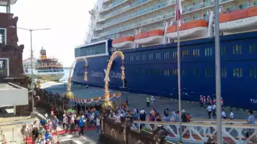 Pertama Kali dalam Sejarah, Kapal Pesiar Jumbo Bawa 3.944 Penumpang Mancanegara Sandar di Pelabuhan Benoa Bali