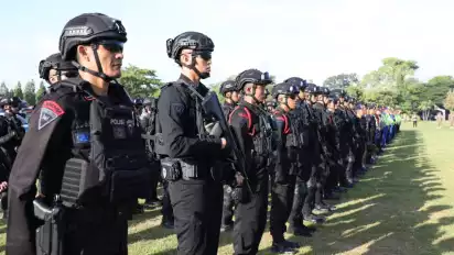 Denpasar, tvOnenews.com - Dalam rangka pengamanan perayaan Hari Natal 2023 dan Tahun Baru 2024, Kapolda Bali Irjen Pol. Ida Bagus Kade Putra Narendra, S.I.K., M.Si., bersama Pj. Gubernur Bali S. M. Mahendra Jaya memimpin Apel Gelar Pasukan Kesiapan Operasi Lilin Agung 2023 yang bertempat di Lapangan Puputan Niti Mandala, Renon, Denpasar, Kamis (21/12).