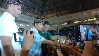 Kehadiran Gibran berserta rombongan disambut antusias oleh pendukungnya yang telah berkumpul sejak siang di GOR Ngurah Rai, Bali.