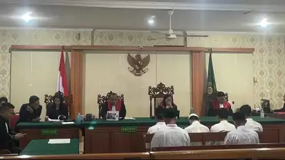 Salah satu terdakwa, Roni Saputra, bahkan menusuk dada korban dengan senjata tajam.