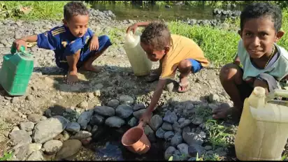 Hal senada pun diungkapkan Petrus Rikman Dodi, salah satu anak-anak yang tangah mengantri menunggu gilirian mengambil air, mengatakan, terpaksa mengambil air dari kubangan karena di kampung mereka tidak ada sumber air bersih.