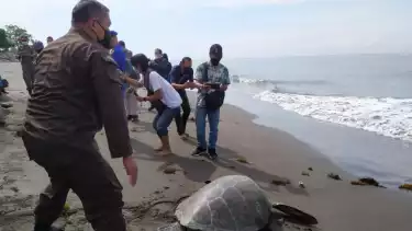 "Ini sudah koordinasikan dengan kejaksaan dan pengadilan, bahwa untuk keselamatan penyu dilepasliarkan ke ekosistemnya dan proses hukum tetap berjalan," terangnya.Â