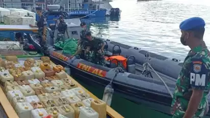 Labuan Bajo, Nusa Tenggara Timur - Pangkalan Angkatan Laut (Lanal) Labuan Bajo menggagalkan penyelundupan bahan bakar minyak subsidi jenis minyak tanah sebanyak 5,5 ton di pesisir pantai Desa Rangko, Kecamatan Komodo, Kabupaten Manggarai Barat pada Kamis 31 Maret 2022. Diduga minyak tanah tersebut akan dibawa ke Sape, Nusa Tenggara Barat untuk dijual.
