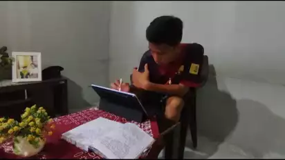 "Terima kasih pak wamen Angga Prabowo," ungkapnya saat membukan bingkisan bantuan sebelum mengerjakan tugas sekolah.Â