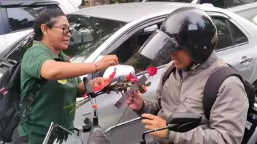 Dalam memperingati Hari AIDS Sedunia (HAS) 2025, Komisi Penanggulangan AIDS (KPA) Kota Denpasar bersama Dinas Kesehatan Kota Denpasar membagikan bunga mawar dan brosur edukasi kepada masyarakat yang melintas di kawasan Catur Muka Denpasar, Senin.