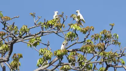 Labuan Bajo, NTT - Cacatua Sulphurea Occidentalis atau yang disebut Kakatua Jambul Kuning hidup di beberapa titik yang tak berpenghuni di Taman Nasional Komodo. Suara khas mereka yang nyaring akan terdengar di siang hari, spesies ini biasa terlihat terbang tinggi di bibir pantai menuju kaki bukit.