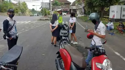 Bali - Merayakan euforia kelulusan dengan berkonvoi, sejumlah siswa sekolah menengah ditilang aparat kepolisian di Tabanan, Bali.