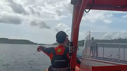 Personel dari unit Siaga SAR Nusa Penida yang berjumlah empat orang berupaya melakukan pencarian bersama unsur SAR lainnya.