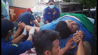 "Kita angkat juga berat enggak keangkat. Kami melakukan evakuasi dengan bongkar pintu, tapi pun tidak bisa keangkat, hingga kita menggunakan forklift lalu kita naikan ke mobil bak dibawa ke RSUD Kota Tangerang," ucapnya.
