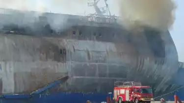 Pantauan tvOnenews.com, Kamis (07/09/2023), petugas pemadam kebakaran tampak masih berjibaku berupaya memadamkan api di kapal tersebut. Tak hanya melalui jalur darat, empat kapal tugboat juga dikerahkan untuk proses pemadaman.