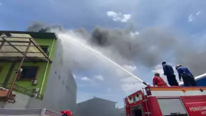 Karyawan Panik Berhamburan, saat Kebakaran Pabrik Tas Koper Empat Lantai di Cipondoh