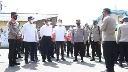 Dalam peninjauan di Pelabuhan Merak, Kapolri Jenderal Listyo Sigit Prabowo didampingi Kapolda Banten Irjen Pol Rudy Heriyanto bersama Menteri Koordinator Bidang Pembangunan Manusia dan Kebudayaan (Menko PMK) Muhadjir Effendy, Menteri Perhubungan Budi Karya Sumadi, Menteri PUPR Basuki Hadimuljono, Menteri Kesehatan Budi Gunadi Sadikin, dan Kepala BNBP Mayjen Suharyanto.