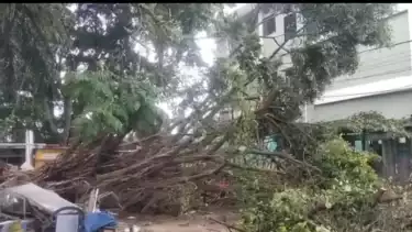 "Dampaknya ada beberapa warung, gerobak yang tertimpa. Kalau penyebabnya, sepertinya ini akarnya yang sudah rapuh, kemudian tadi ada angin kencang juga akhirnya pohon beringin ini tumbang," kata Rahardi Tri, Pengawas dari Dinas Lingkungan Hidup (DLH) Kota Tangsel di lokasi.