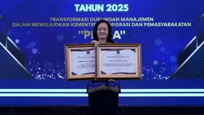 tvOnenews.com - Hanya dalam hitungan bulan sejak menjabat, Kantor Wilayah (Kanwil) Direktorat Jenderal Imigrasi Banten di bawah kepemimpinan visioner Ibu Felucia Sengky Ratna langsung menggebrak dengan menorehkan prestasi gemilang. Kanwil Banten berhasil memboyong dua penghargaan sekaligus pada acara Rapat Koordinasi (Rakor) Dukungan Manajemen (Dukman) Kementerian Imigrasi dan Pemasyarakatan tahun 2025 yang diselenggarakan di Hotel Shangri-La, Jakarta, Rabu, 6 Agustus 2025. Penghargaan ini menjadi bukti nyata komitmen Kanwil Banten dalam mewujudkan tata kelola pemerintahan yang baik dan pelayanan publik yang prima.