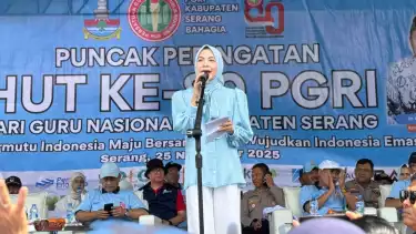 tvOnenews.com - Bupati Serang Ratu Rachmatuzakiyah mengungkapkan komitmennya untuk terus berupaya menghadirkan kebijakan yang berpihak pada peningkatan kompetensi pendidik, pemerataan akses pendidikan, serta penguatan fasilitas belajar yang layak. Pemerintah Kabupaten (Pemkab) Serang, Provinsi Banten, mengalokasikan anggaran khusus untuk program beasiswa pascasarjana (S2) dan insentif kesejahteraan bagi ribuan tenaga pendidik pada 2025 sebagai upaya strategis meningkatkan mutu sumber daya manusia.
