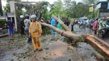 "Pohon tumbang ini juga sempat menutup jalan kurang lebih sekitar 45 menit dan mengakibatkan kemacetan," lanjutnya.
