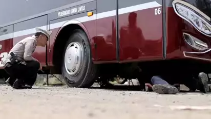 Petugas Gabungan Sidak Ramcek Armada Bus Lebaran, Temukan Kendaraan Tidak Layak Jalan