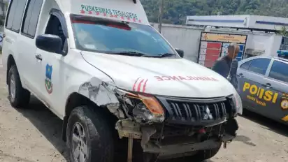 Garut, tvOnenews.com - Mobil ambulan milik UPT Puskesmas Tegalgede Pakenjeng Garut, terlibat kecelakaan di jalan raya Cisurupan Garut, Jawa Barat, pada Sabtu (08/04/2023). Ambulan yang tak sedang membawa pasien itu terlibat tabrakan dengan mobil SUV Opel Blazer. Tak ada korban jiwa dalam peristiwa ini.