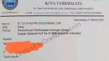 Dalam surat bernomor B/124/III/Ka/PM.00/2023/BNNK-TSM, yang dilayangkan pada tanggal 17 Maret 2023 lalu itu berisi ajakan dan harapan BNN Kota Tasikmalaya kepada lembaga untuk mengirimkan karangan bunga ucapan selamat ulang tahun ke-21. Bahkan, lengkap dengan saran isi kata - kata karangan bunga yakni “SELAMAT HUT BNN RI KE-21 AKSELERASI WAR ON DRUGS MENUJU INDONESIA BERSINAR”.
