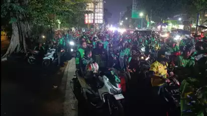 Bogor, Jawa Barat - Ribuan warga dan pengemudi ojek online, Kamis (13/4/23) malam mengantre di depan pintu 2 Istana Bogor.