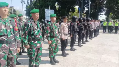 Sebelum terjun ke lapangan, aparat gabungan tersebut apel bersama di Alun - Alun Kota Garut.