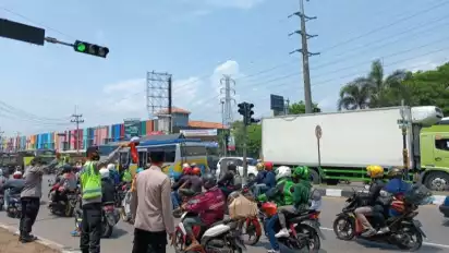 Cirebon, tvOnenews.com - Jalur Arteri Cirebon, Rabu (19/04/2023) siang, dipadati kendaraan yang mengarah ke Jawa maupun Jakarta. Mayoritas kendaraan yang melintas didominasi oleh pemudik sepeda motor.
