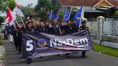 Tasikmalaya, tvOnenews.com - DPD Partai Nasdem Kota Tasikmalaya mendaftarkan 45 Bakal Calon Legislatif (Bacaleg) ke KPU Kota Tasikmalaya, Kamis (11/05/2023). Rombongan DPD Partai Nasdem Kota Tasikmalaya datang ke kantor KPU dengan berjalan kaki atau longmarch sambil membentangkan spanduk dan mengibarkan bendera merah putih.