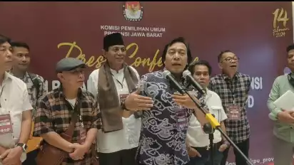 Usai menyerahkan berkas pencalonannya kepada KPU Jawa Barat panggung konferensi pers KPU Jabar pun mendadak menjadi panggung lawak.