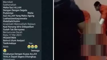 "Bismillah Subhanallah Maha Suci ALLAH Dengan Dengan. Segala Pujiannya Maha Suci ALLAH Yang Maha Agung. Laahaulawalaquwwata Illabillahil'Aziim Innalillahi Wainnaillahi Rojiuun. Kyai Nanang Idris Didapatkan Sudah Tak Bernyawa Berlumuran Darah Rabu 17 Mei 2023 PESANTREN Bahrul Ulum Awipari Tasikmalaya. Yaa, Rabb????. Semoga Pelakunya Dengan Kuasa ALLAH TA'ALA Dapat Segera Ditangkap. Wassalaam. Hendra Djumadi. Kamis 18 Mei 2023" demikian isi pesan berantai yang saat ini viral di media sosial.